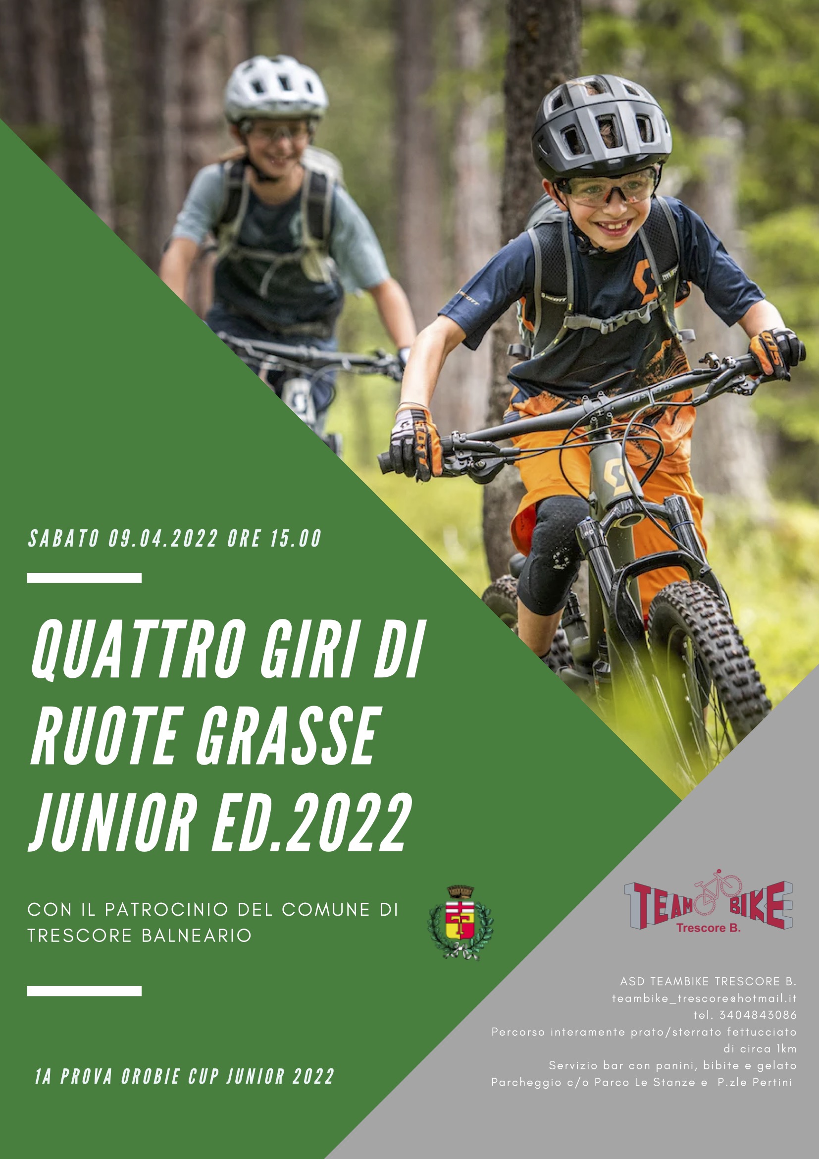 La competizione sportiva Quattro giri di ruote grasse junior – ed.2022, valevole come prova del circuito provinciale Orobie Cup Junior, è organizzata dall’associazione Team Bike con il patrocinio del Comune di Trescore Balneario.