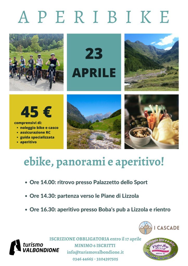 Una giornata tra ebike, panorami e aperitivi, con una piccola escursione in bicicletta alla scoperta delle Piane di Lizzola, seguita da un aperitivo presso il Boba’s pub.
