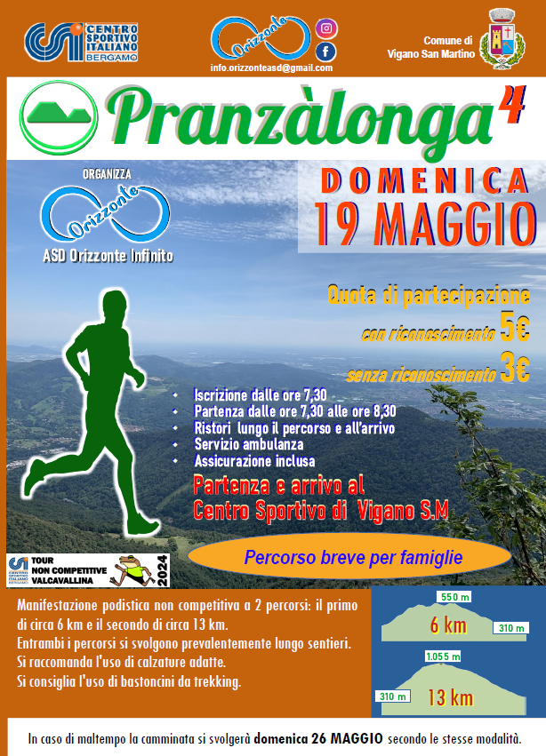 In caso di maltempo la camminata è posticipata al 26 Maggio.