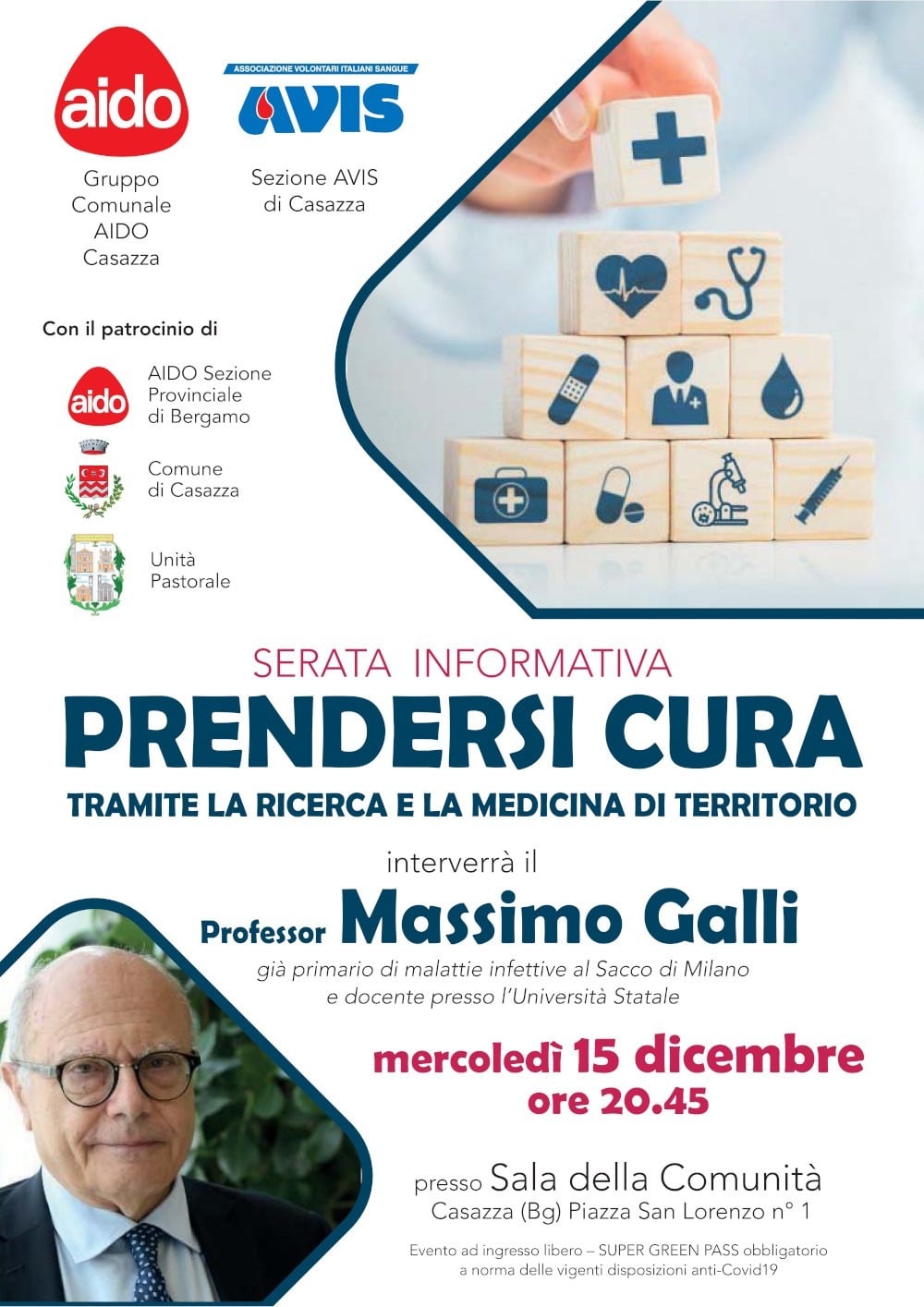 Serata informativa "Prendersi cura tramite la ricerca e la medicina di territorio" interverrà il professor Massimo Galli già primario di malattie infettive al Sacco di Milano e docente presso l'Università Statale.