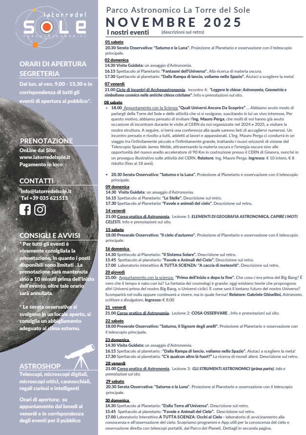 A seguire, visione del film full-dome "Oasi nello spazio".