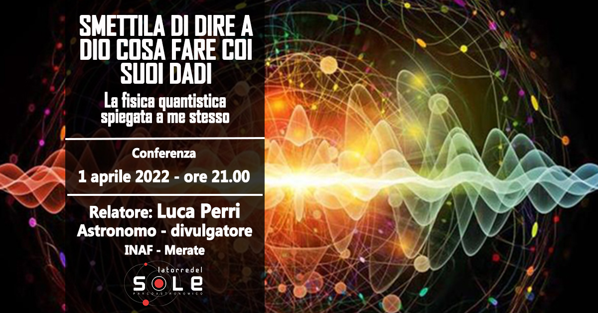 Venerdì 1° aprile, presso la Torre del Sole, si terrà una serata di approfondimento scientifico adatto a tutti sul mondo infinitamente piccolo della fisica quantistica.