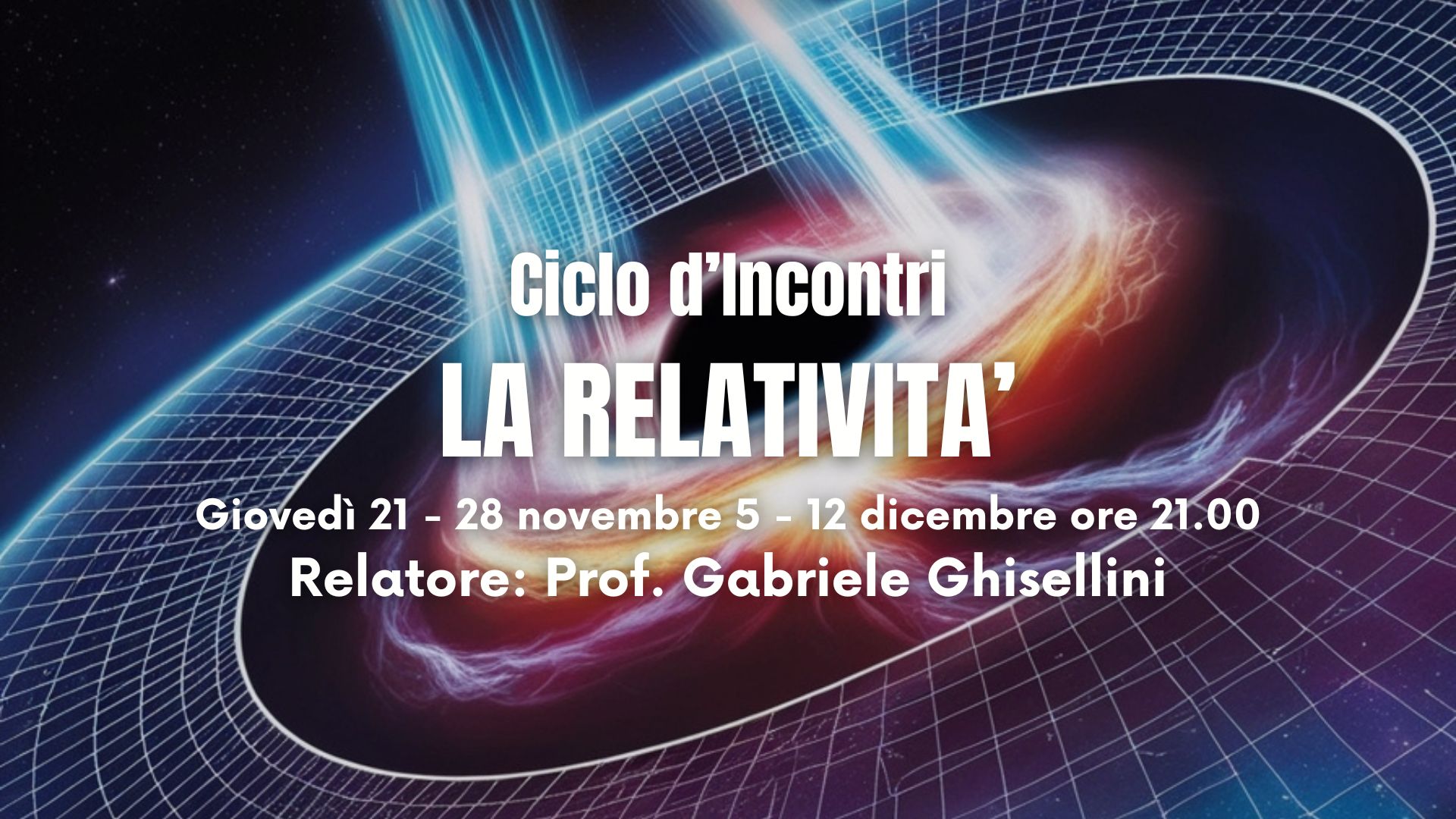 Ciclo di quattro incontri dedicati al tema della relatività. Una colonna della fisica moderna: la relatività di Einstein. Esposizione semplice della relatività ristretta e di quella generale, avendo cura di delineare il percorso delle idee e del contesto. Inoltre, saranno spiegate le osservazioni astrofisiche sorprendenti che hanno testato la relatività: quasar, sorgenti superluminali, buchi neri.
