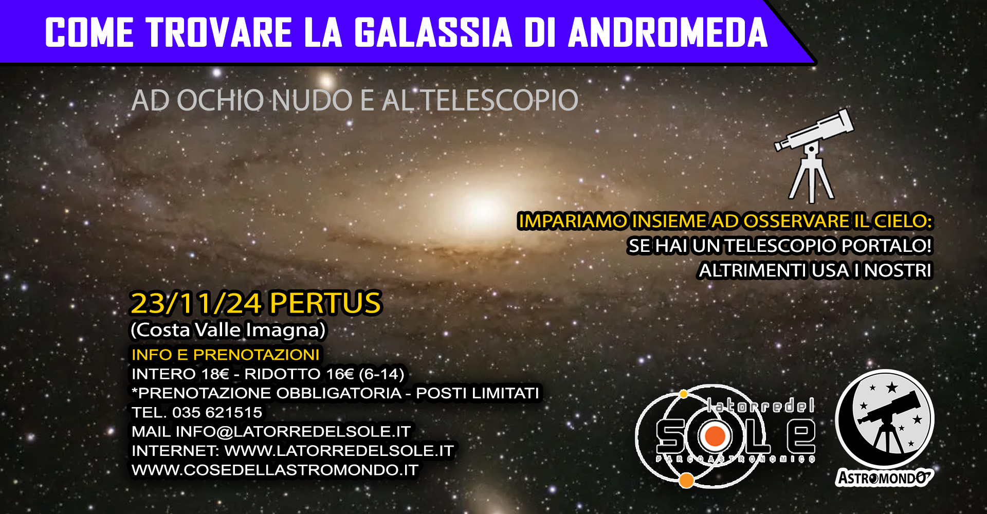 Preparatevi a un'osservazione unica! Si punteranno i telescopi verso le meraviglie del cielo profondo alla scoperta di una delle piรน famose galassie. Un'occasione imperdibile per scoprire i segreti dell'universo, in alta montagna, a Passo Pertus.