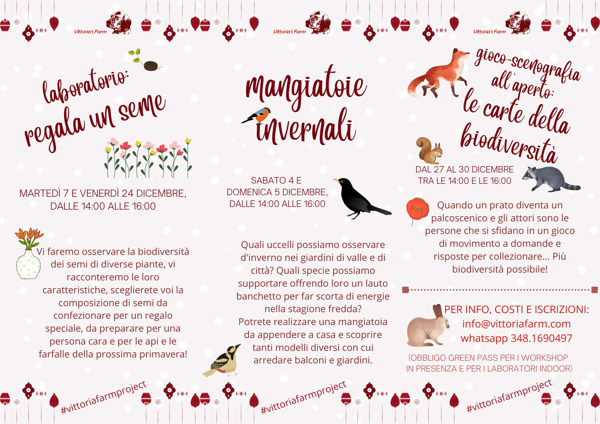 (Tutti i materiali per le attività sono inclusi; ad ogni appuntamento ad accogliervi una tisana calda con biscotti; possibilità di acquisto in loco dei nostri mix di semi di fiori da biodiversitygardening)