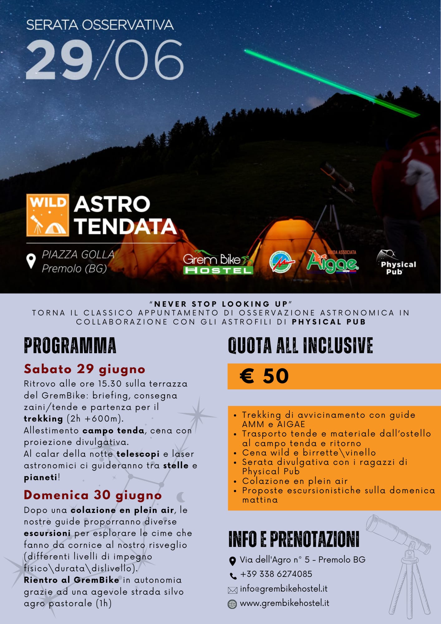 Sabato 29 e domenica 30 giugno, torna il classico appuntamento di osservazione astronomica organizzata dal Grem Bike Hostel in collaborazione con gli astrofili Physical Pub. PROGRAMMA: