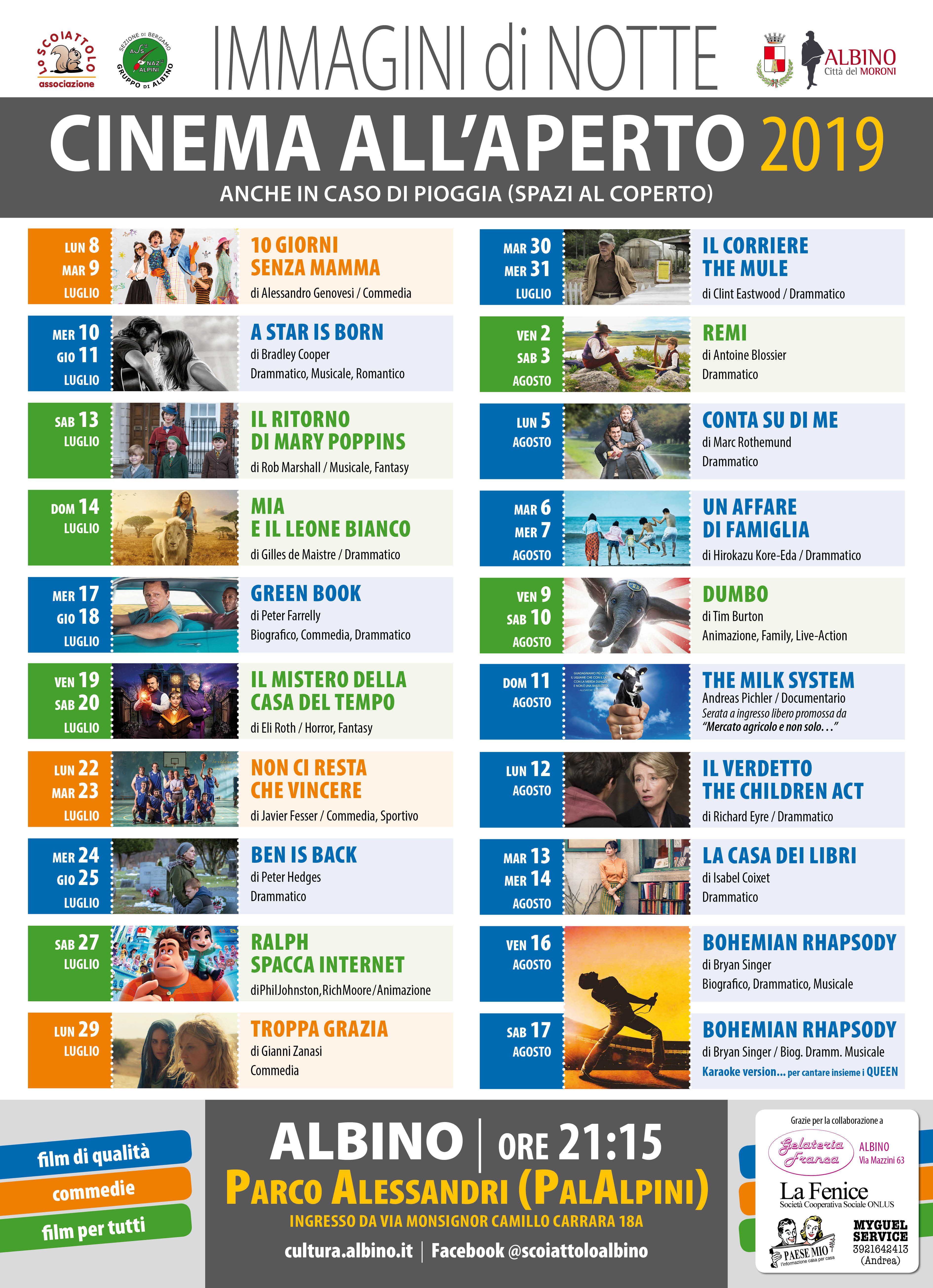 Mercoledì 17 luglio alle 21,15 appuntamento ad Albino presso il PalAlpini con la proiezione di «Green Book» - New York, anni '60. Tony Lip, un tempo rinomato buttafuori, finisce a fare l'autista di Don Shirley, giovane pianista afro-americano. Lip deve accompagnare il pianista prodigio in un lungo tour nel profondo sud degli Stati Uniti. Dopo alcune prime difficoltà, il viaggio nelle regioni razziste degli USA porta i due a stringere una forte e straordinaria amicizia.