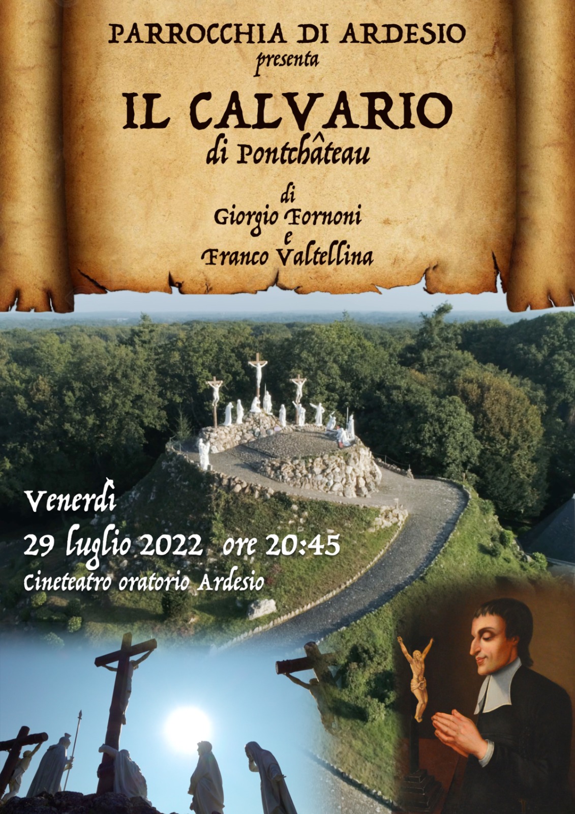 Venerdì 29 luglio 2022 alle ore 20.45 va in scena al Cineteatro dell'oratorio di Ardesio "Il Calvario" Di Pontchateau uno spettacolo a cura della Parrocchia di Ardesio.