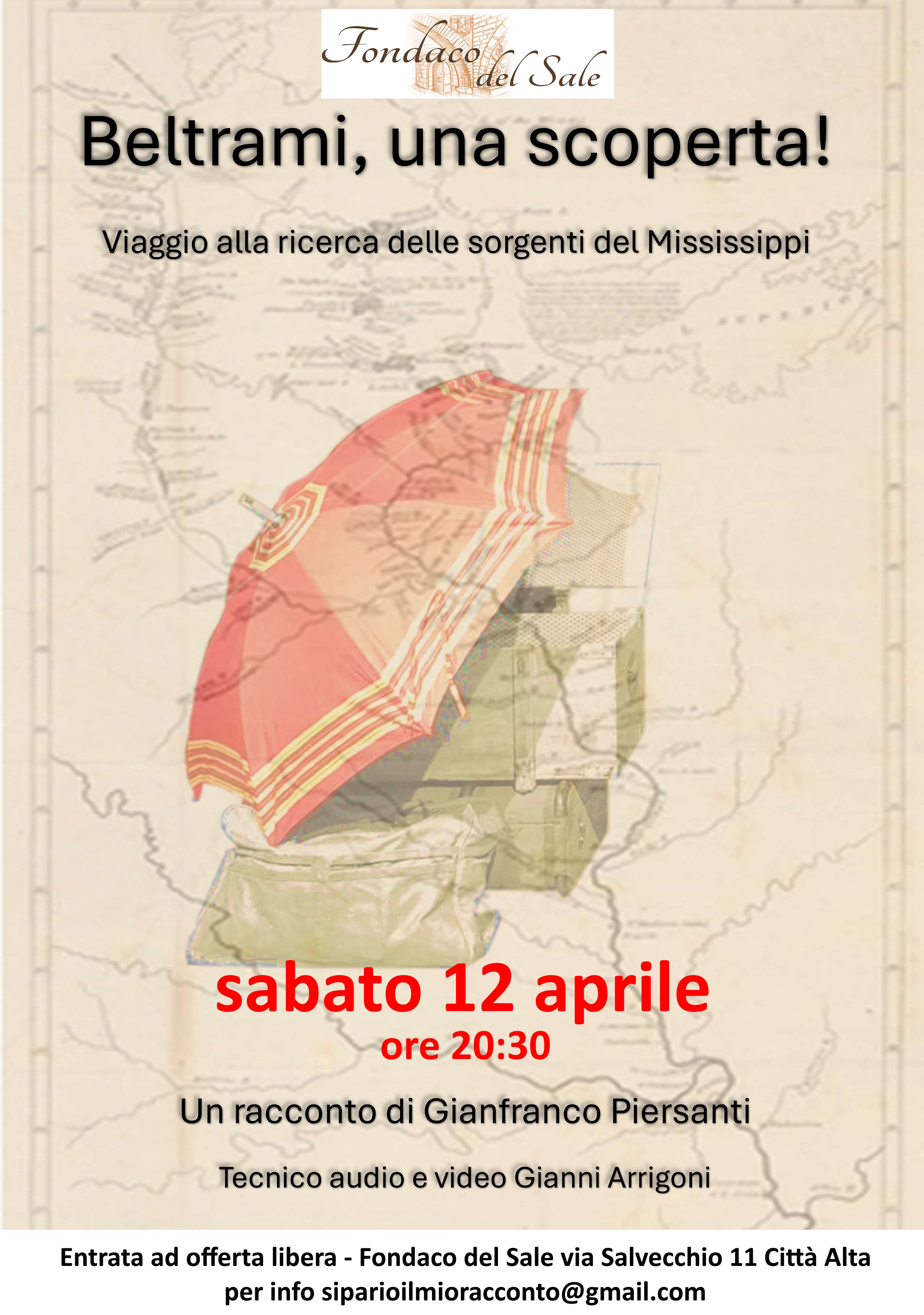 Con questo racconto Gianfranco Piersanti cerca di far conoscere alcuni aspetti di Giacomo Costantino Beltrami, concentrandosi sull’episodio più conosciuto e che lo rese celebre: il viaggio alla scoperta delle sorgenti del Mississippi.