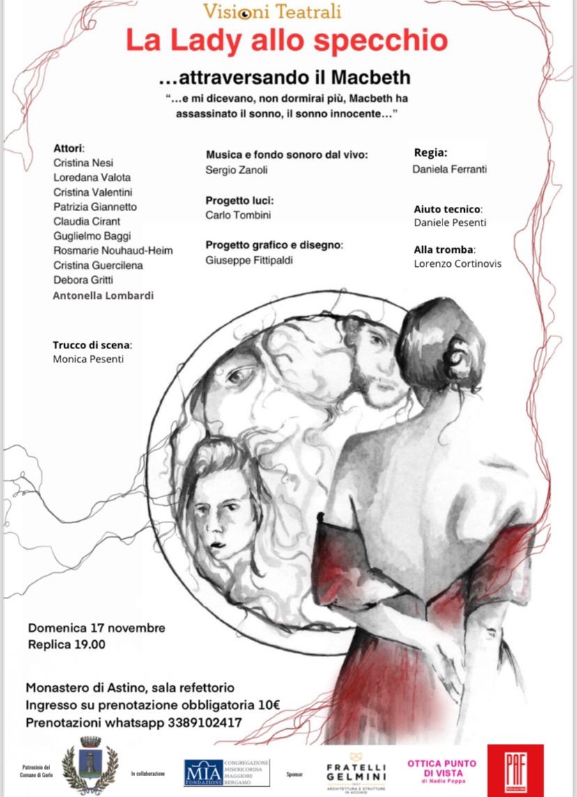 Visioni Teatrali propone "La lady allo specchio... attraversando il Macbeth", tratto da uno dei pilastri della letteratura inglese: Macbeth, tragedia di Shakespeare.
