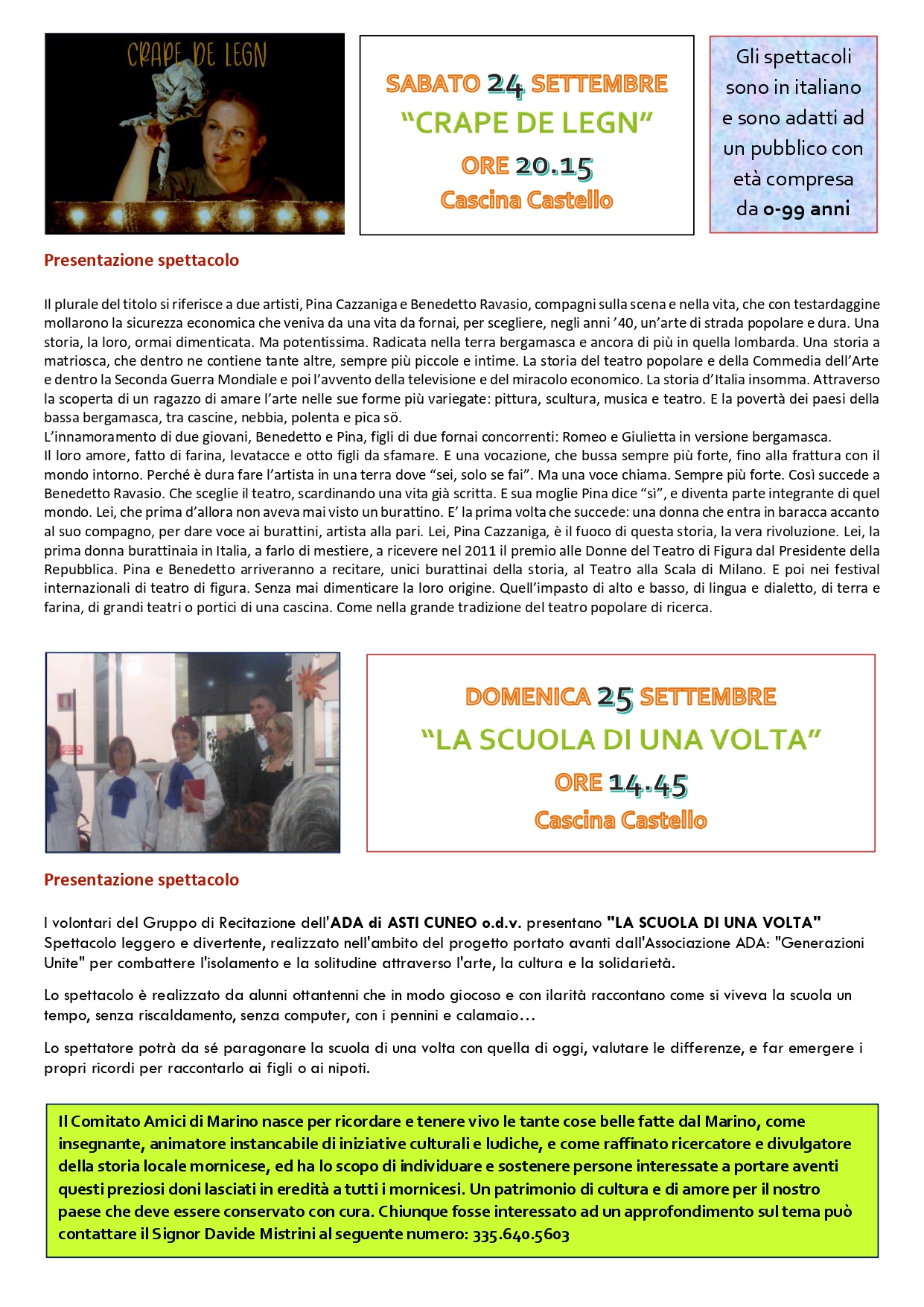 Inaugurazione mostra "la scuola di una volta" Il comitato gli "amici di Marino Caffi", in collaborazione con l'amministrazione comunale, organizza tre giorni ricchi di iniziative.