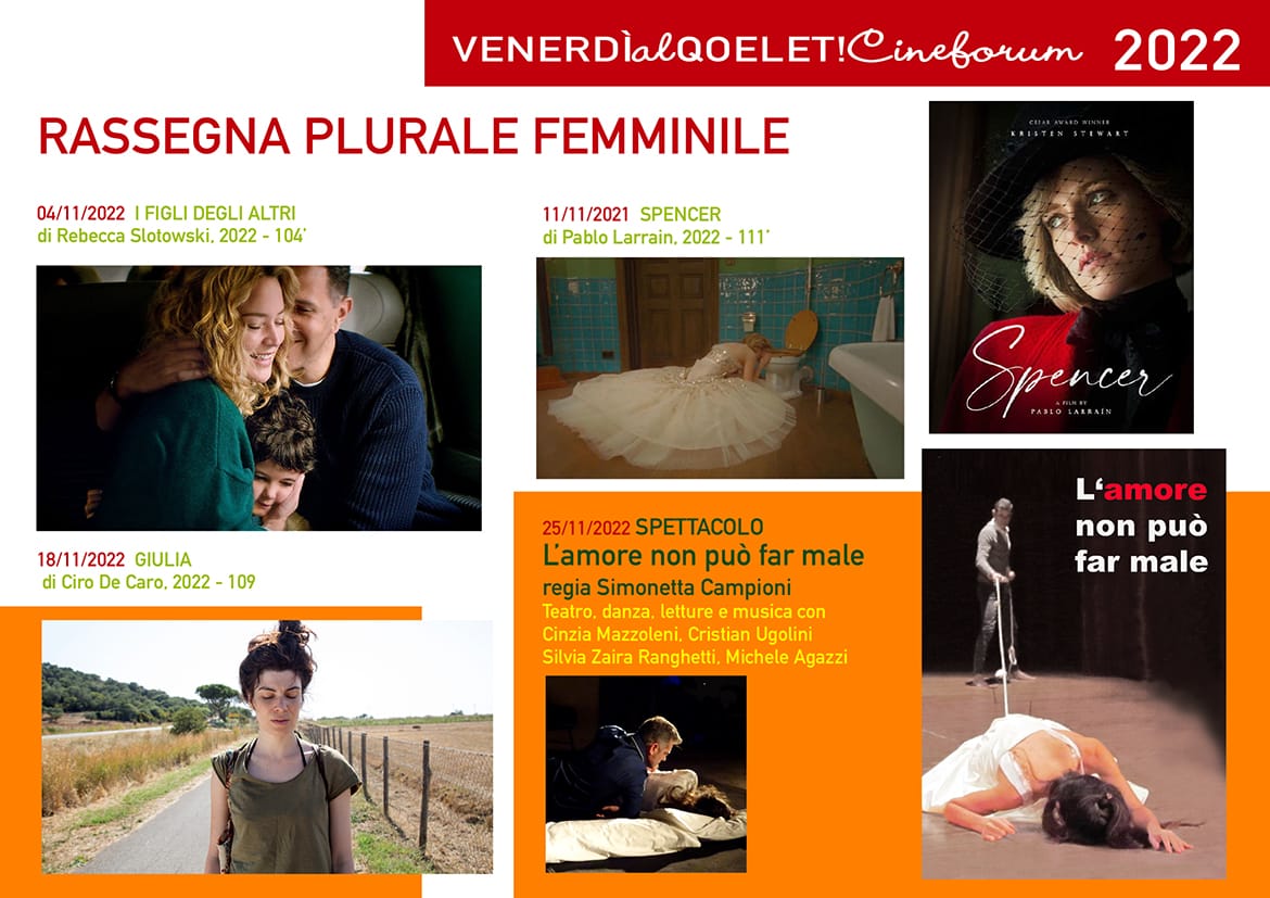 In occasione della "Giornata internazionale per l'eliminazione della violenza contro le donne" che ricorre il 25 novembre, il Qoelet di Redona propone una rassegna completamente dedicata alla figura della donna: "Plurale femminile".