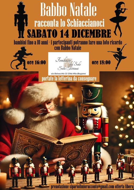 La storia del Principe Schiaccianoci è una delle favole natalizie più famosa al mondo e Babbo Natale la racconterà ai bambini che si siederanno intorno a lui dopo che, grazie ad un Elfo, avranno attraversato uno dei suoi laboratori magazzini di giocattoli. Un'ora magica nell'atmosfera natalizia per bambini sino a 10 anni.