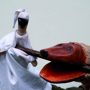 Prezioso omaggio alla grande storia napoletana delle guarattelle, lo spettacolo racconta del canto stonato di Pulcinella che, nell’intento di dedicare una serenata a Teresina, richiama invece un feroce cane e altri personaggi; si innescano così una serie di situazioni comiche e grottesche che attraverso un teatro classico, in apparenza semplice, richiamano simboli e significati arcaici.