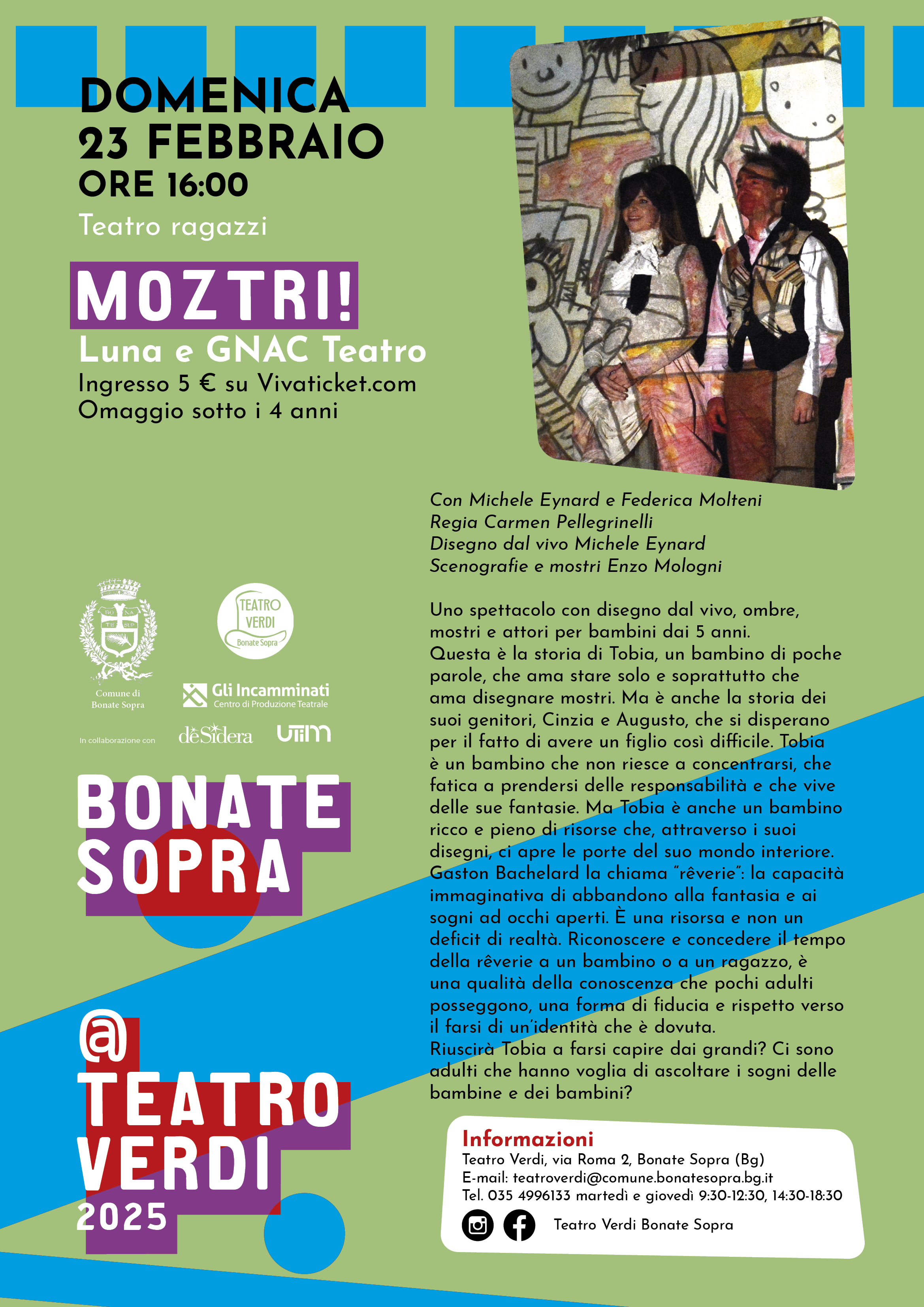 Prosegue la nuova stagione promossa dal Comune di Bonate Sopra, diretta dal teatro De Gli incamminati in collaborazione con deSidera Teatro e Utim: uno spettacolo che narra la storia di Tobia e dei suoi disegni, con Luna e GNAC Teatro.