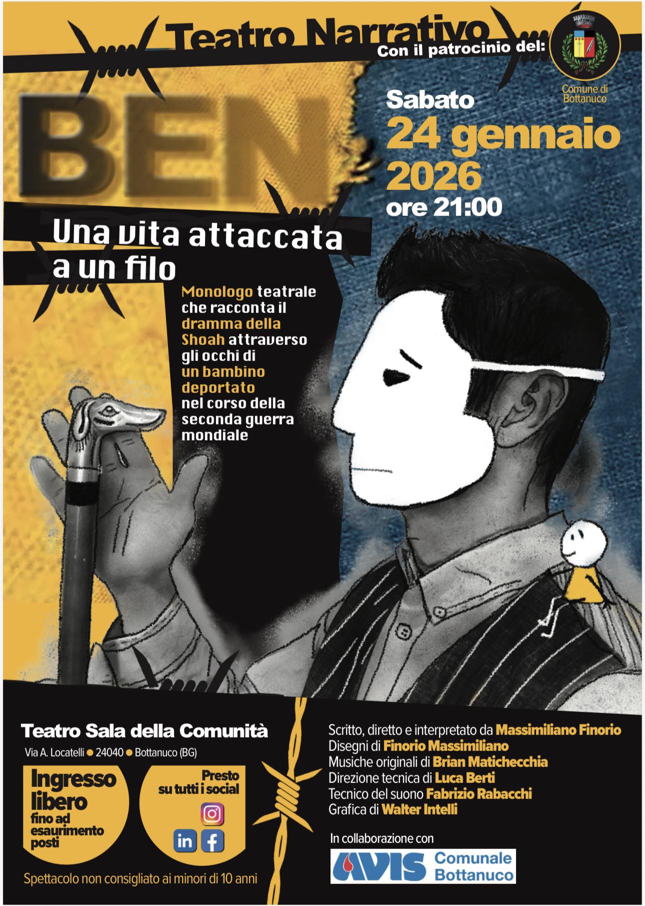 In occasione della Giornata della Memoria, al Teatro Sala della Comunità di Bottanuco va in scena un commovente spettacolo riguardo la tragedia della Shoah attraverso gli occhi di un bambino.