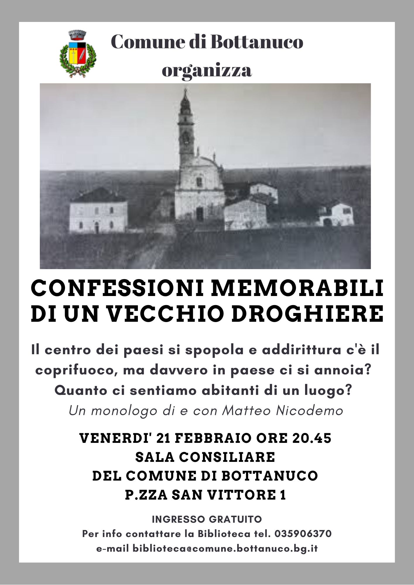 Un monologo di e con Matteo Nicodemo che racconta la vita e le storie di un piccolo paese.