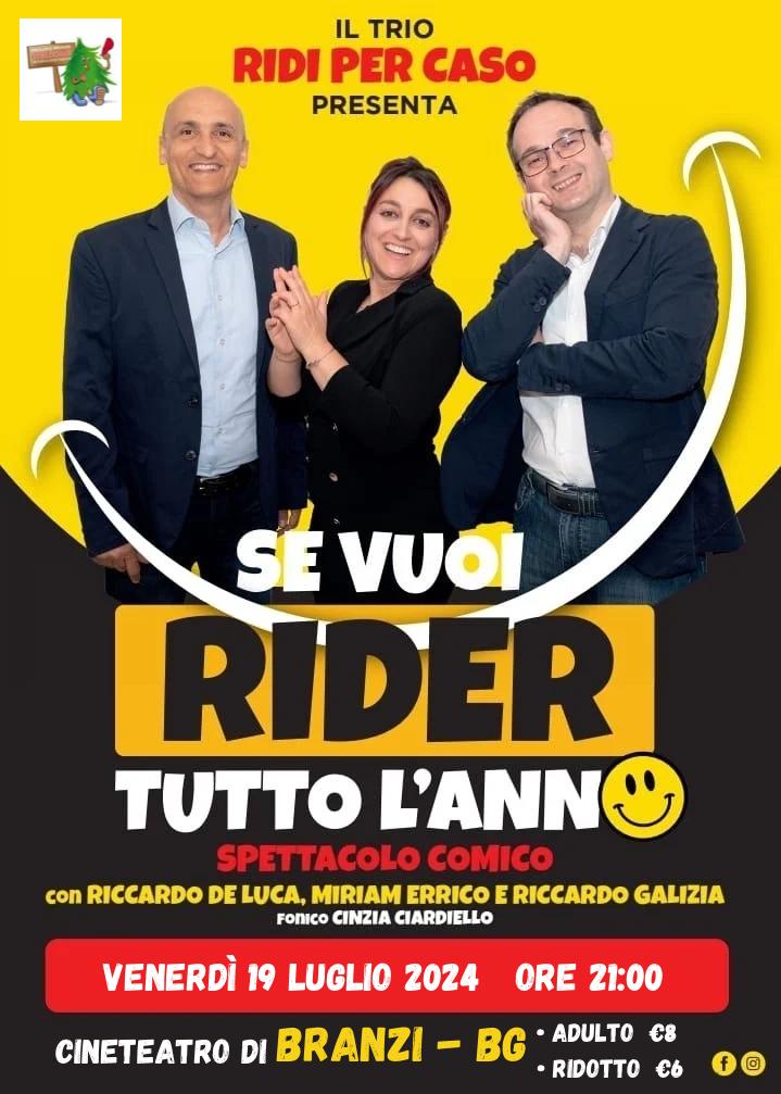 Il trio Ridi per Caso presenta a Branzi lo spettacolo comico “Se vuoi rider tutto l’anno“.