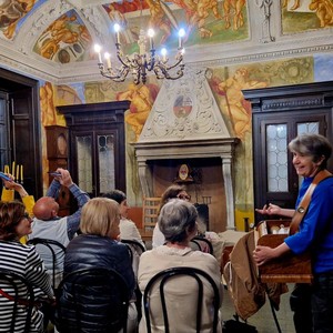 Qui solo con voce e corpo co buon umore e voglia di giocare si passa una mattinata in compagnia di tre nani malamdrini la Fata Zuccona, il Lupo Sciocco, Paolina coraggiosa Pierone testardo, la strega Bistrega e sua figlia Margherita Margheritone, il Braccio di Morto, gli Scheletri che ballano, Il Re all’inferno, il Principe dagli occhi verdi, e poi un ferroviere, un fornaio, un cacciatore presuntuoso. Storie in prosa e in rima servite come un piatto profumato di tante emozioni con contorno di splendide musiche prodotte da un pregevole organetto a manovella.