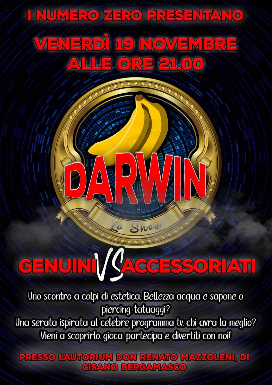 Show interattivo ispirato alla celebre trasmissione tv. Madre natura guiderà le prove delle due categorie in gara: GENUINI (senza piercing, tatuaggi etc etc) contro ACCESSORIATI.