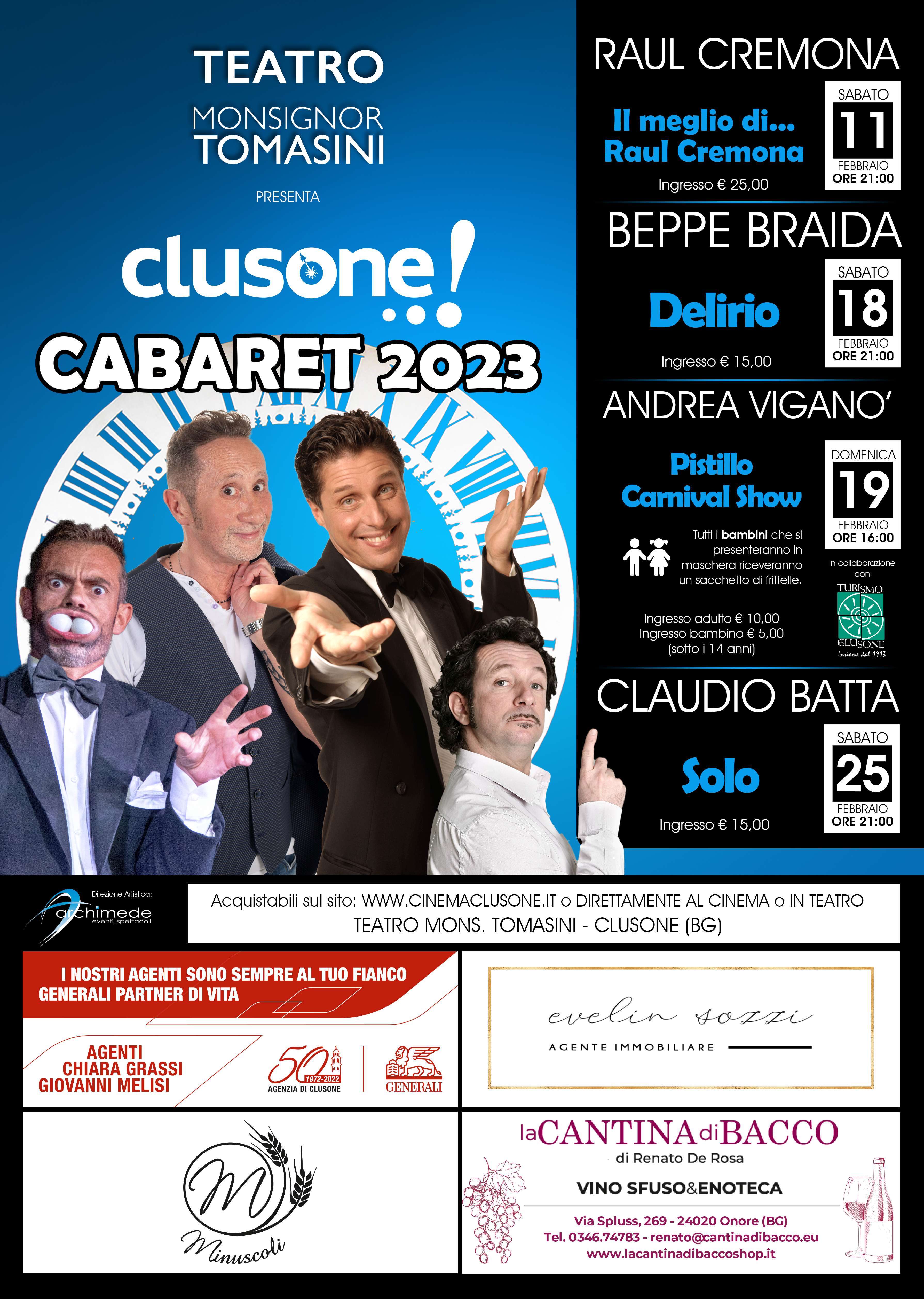 Risate assicurate negli appuntamenti del Clusone Cabaret 2023: uno spettacolo di cabaret rivolto ad adulti e bambini di Claudio Batta.