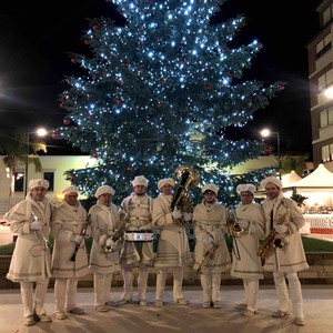 Un gruppo di 8 strumentisti a fiato in elegante e raffinato abito bianco che richiama la tradizione del natale nordico animerà le vie del centro storico con un fantastico spettacolo musicale itinerante.