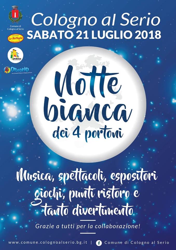 Appuntamento con la notte più lunga dell'anno per vivere momenti di spensieratezza e divertimento nella suggestiva e meravigliosa cornice di Cologno al Serio.
