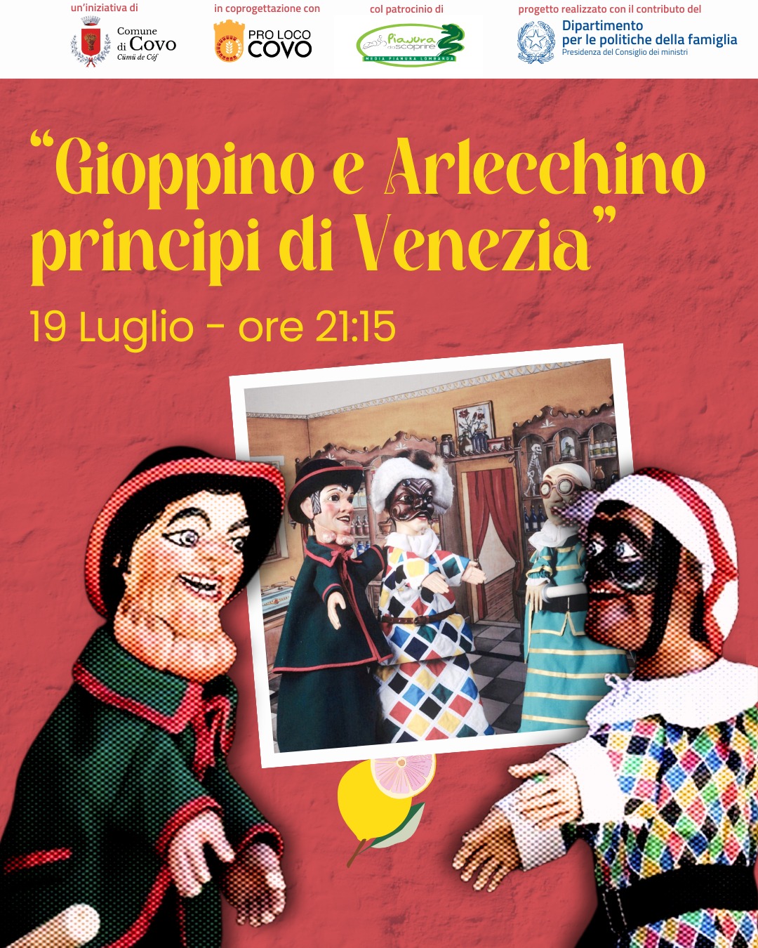 Venerdì 19 luglio a Covo si esibiranno Cristian e suo papà Ferruccio con il loro spettacolo di burattini.