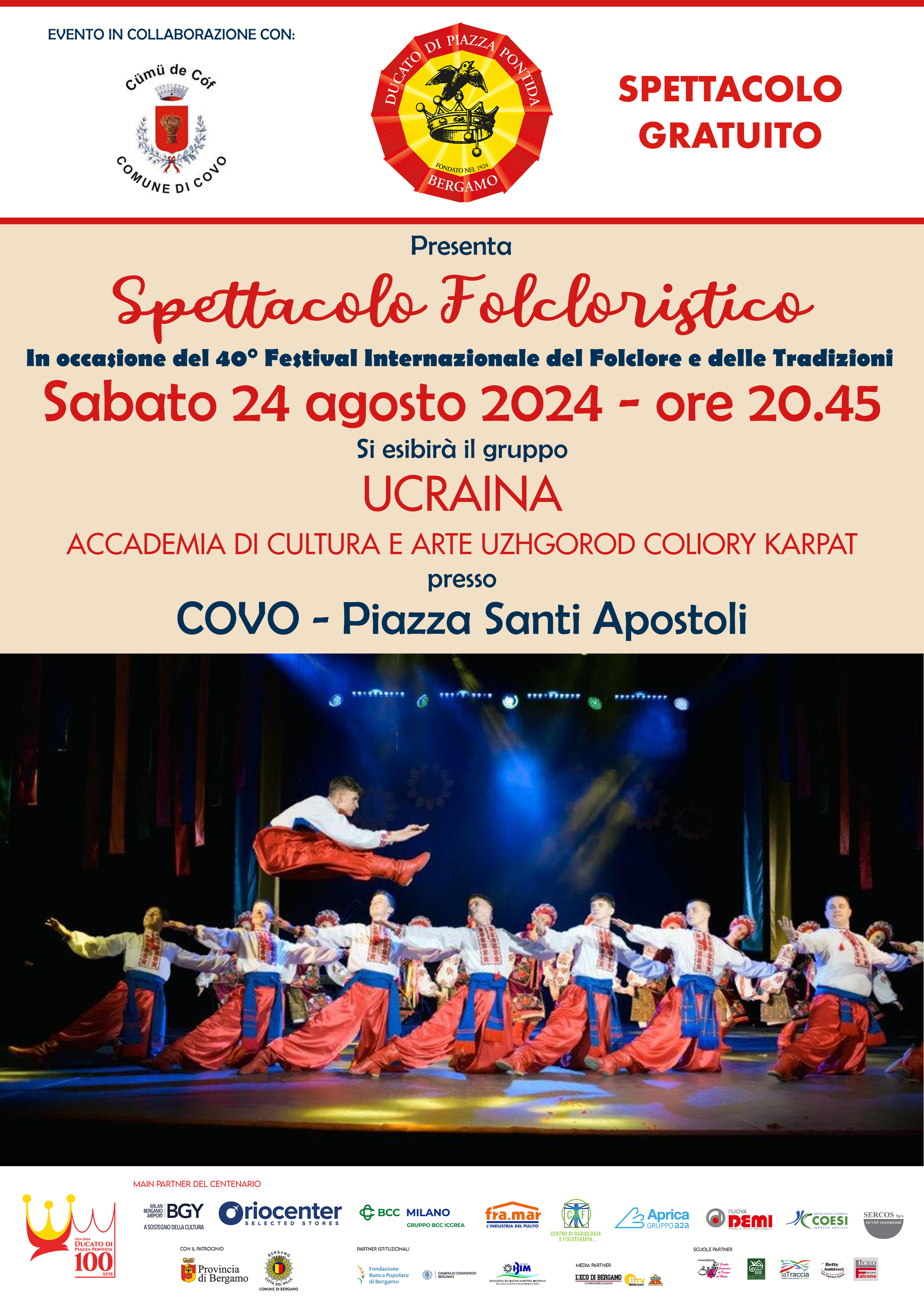 Dal 19 al 26 agosto arriva la 40esima edizione del Festival Internazionale del Folclore e delle Tradizioni. In serata il gruppo Ucraina si esibirà a Covo.