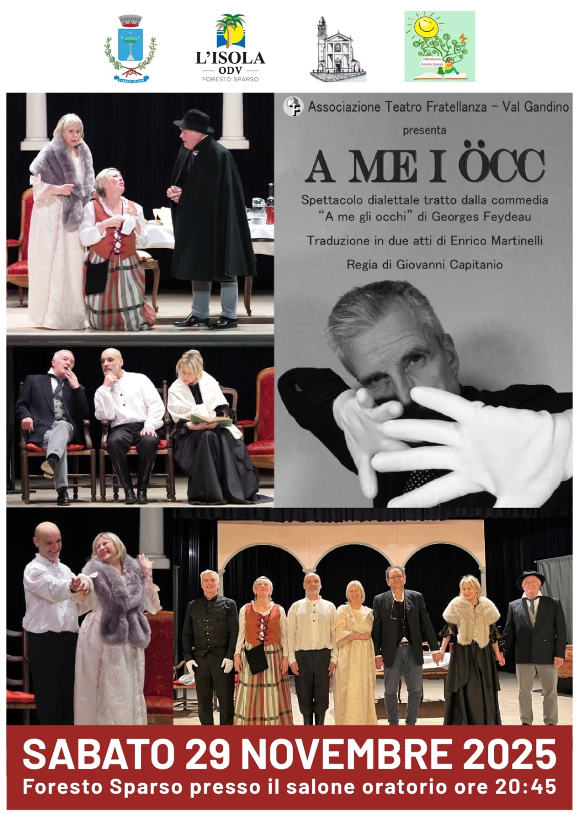 Nel salone dell'oratorio di Foresto Sparso andrà in scena uno spettacolo dialettale della commedia «A me gli occhi» di Georges Feydau. Alla regia Giovanni Capitanio.