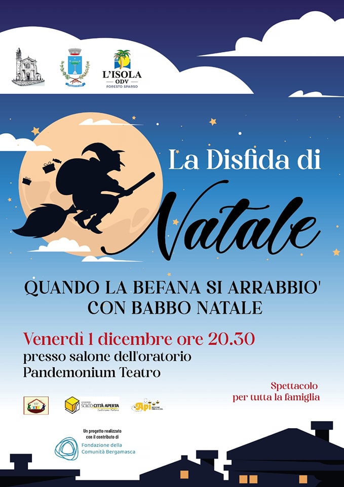 Venerdì 1 dicembre, alle ore 20:30, si terrà lo spettacolo teatrale per famiglie "La Disfida di Natale, quando la Befana si arrabbiò con Babbo Natale" presso il salone dell'Oratorio di Foresto Sparso.