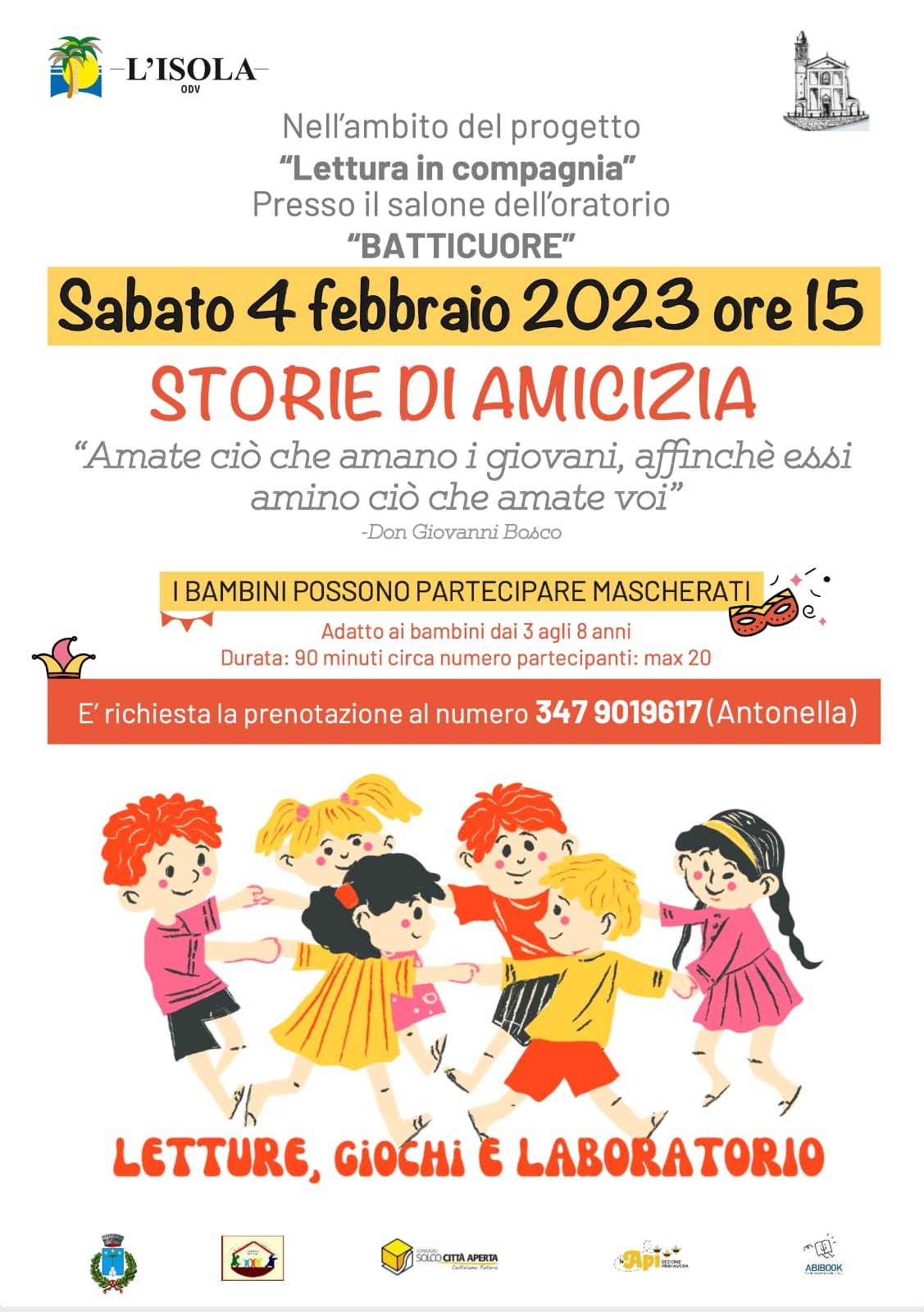 Avrà luogo presso il salone "Batticuore" dell'Oratorio San Marco Evangelista di Foresto Sparso la lettura "Storie di amicizia", adatta ai bambini dai 3 agli 8 anni.
