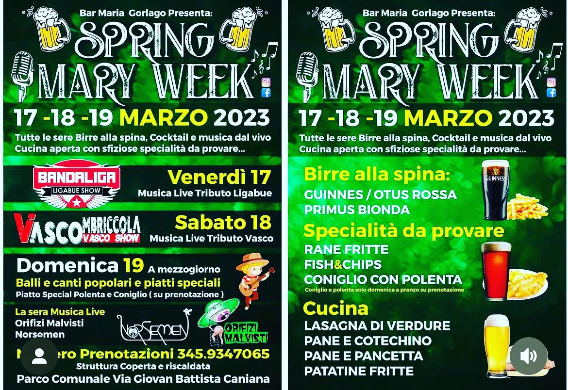17 -18 -19 MARZO 2023Bar Maria vi aspetta il Spring Mary Week, un weekend di musa e divertimento