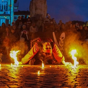 Piazza Tredici Martiri si accende con lo spettacolo con il fuoco proposto dalla danzatrice del fuoco con le sue incredibili e infiammanti acrobazie.