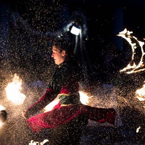 Esibizione della danzatrice con il fuoco Flambetta Foco Loco.