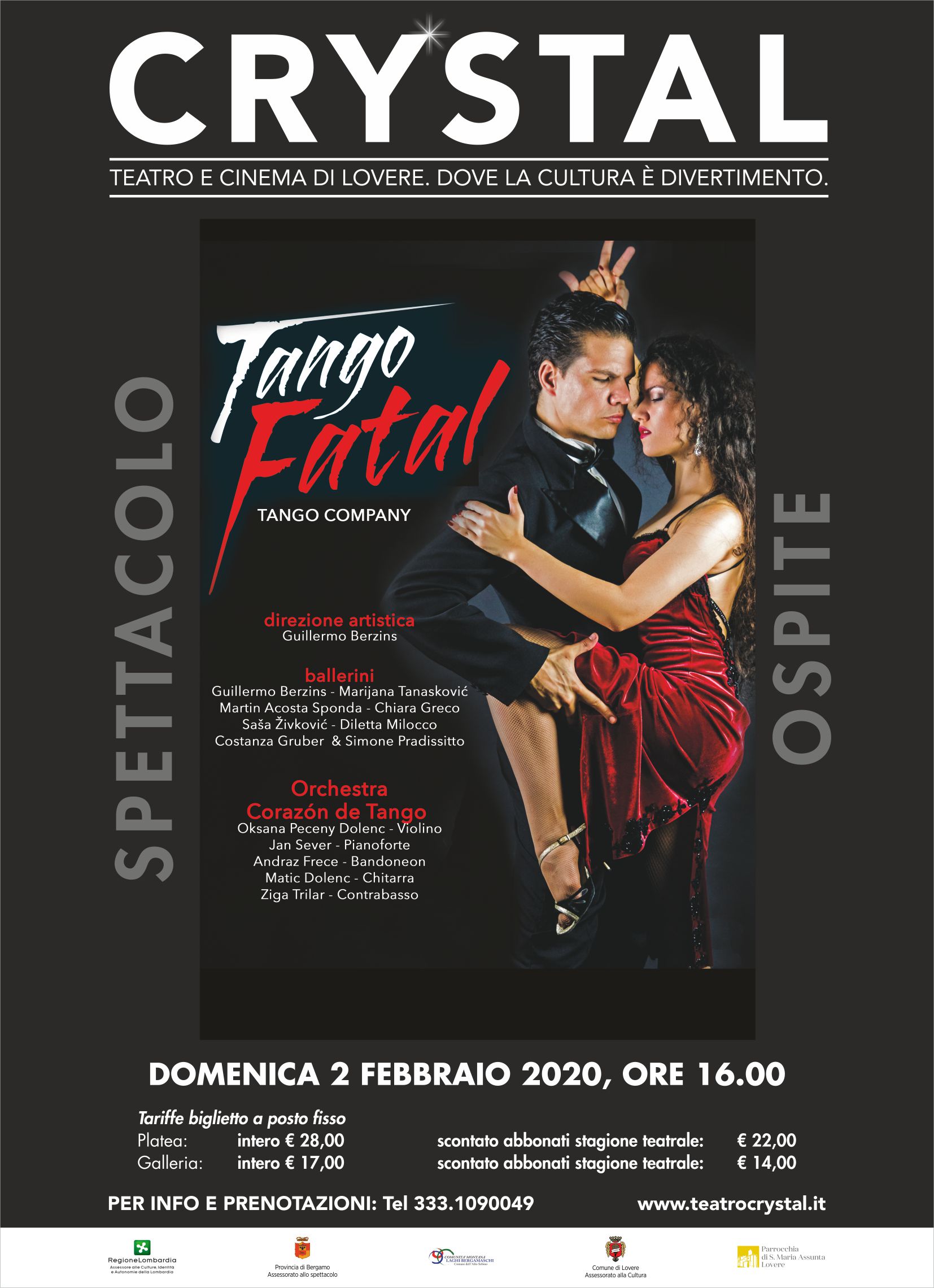 Da un’idea artistica di Guillermo Berzins, ballerino e coreografo argentino di fama internazionale, Tango Fatal farà rinascere sul palcoscenico le sensuali e misteriose atmosfere porteñe in un’ambientazione astratta e sospesa nel tempo. Le romantiche e struggenti note dei più celebri tanghi si mescoleranno a spettacolari coreografie contemporanee all'energia contagiosa del folklore argentino. Accanto al talentuoso Guillermo Berzins ci sarà Marijana Tanaskovic, bella e sensuale ballerina dalla grande capacità tecnica ed interpretativa, ed un corpo di ballo di magnifici ballerini. La musica dal vivo sarà affidata all’Orchestra Corazón de Tango, fondata e formata da Oksana Peceny Dolenc.