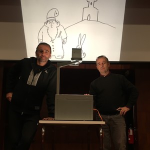 Uno spettacolo senza copione. Una storia completamente inventata insieme al pubblico. Una narrazione con parole e immagini che coinvolge il pubblico di tutte le età. Partendo dalle «unità narrative», gli spettatori sono chiamati a scegliere luogo, tempo, caratteristiche dei protagonisti e soprattutto gli eventi che accadono all’interno della storia. Mentre l’attore-conduttore intrattiene e stimola il pubblico, il suo compagno in scena, l’attore illustratore, disegna tutto ciò che viene ideato sulla lavagna luminosa. Al termine della fase di creazione, viene raccontata la storia con parole e immagini. Uno spettacolo sempre diverso ed entusiasmante.