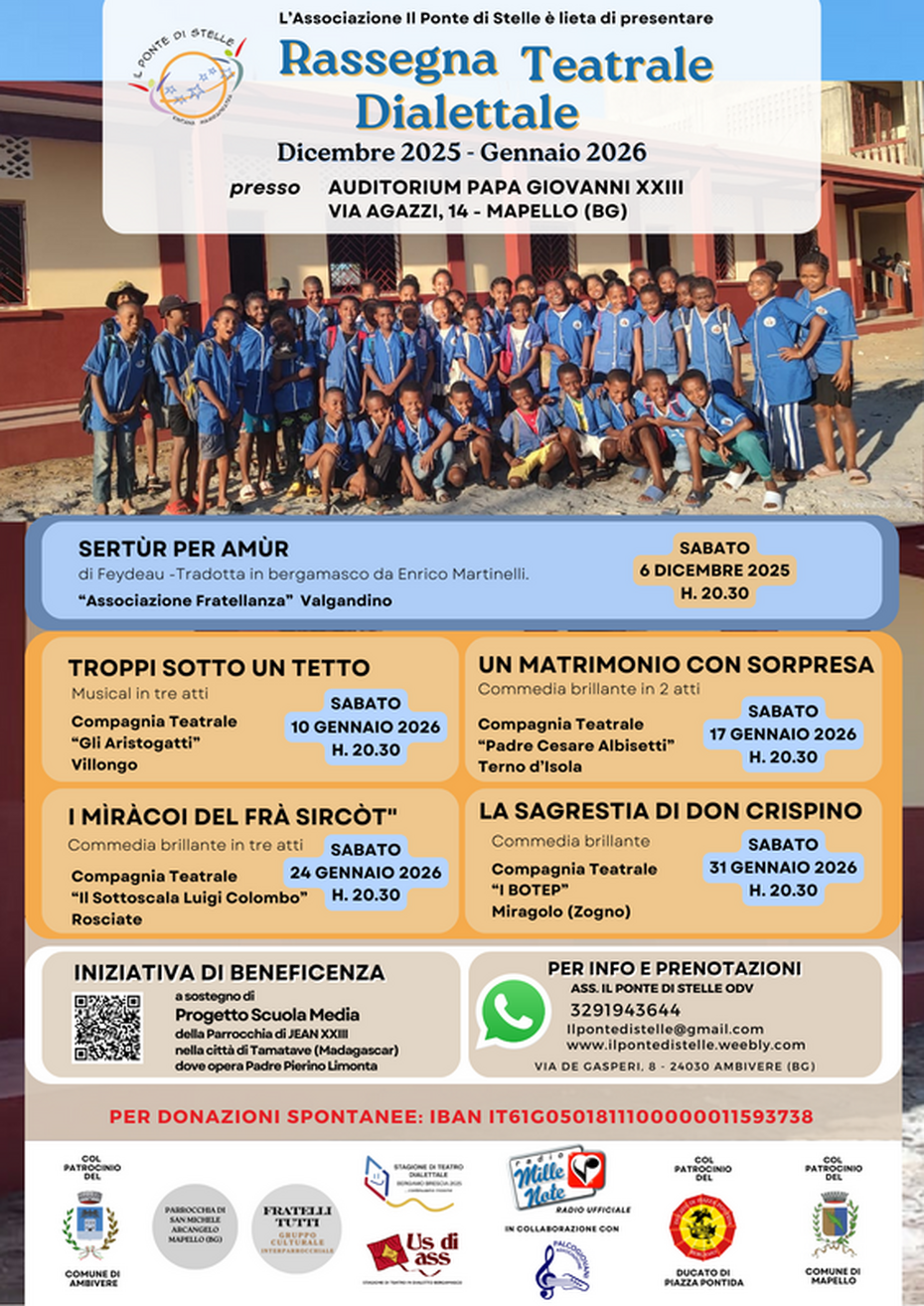 Per la «Rassegna di Teatro Dialettale» all'Auditorium Papa Giovanni di Mapello, va in scena la Compagnia Il Sottoscala Luigi Colombo di Rosciate, con una commedia dialettale che racconta una serie di peripezie amorose tra due giovani e le loro famiglie.