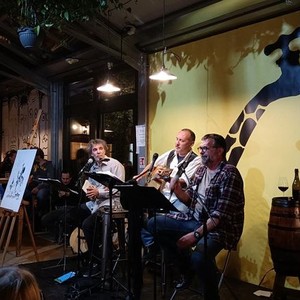 "Non un concerto. Più uno spettacolo, con letture, aneddoti gucciniani e anche canzoni. Due attori e un cantante; in scena due chitarre, un cajon, tre microfoni, tre leggii, una botte e un cavalletto per quadri che rappresentano le tre sezioni che compongono lo spettacolo: sezione osterie, sezione impegno civile, sezione quasi d’amore”