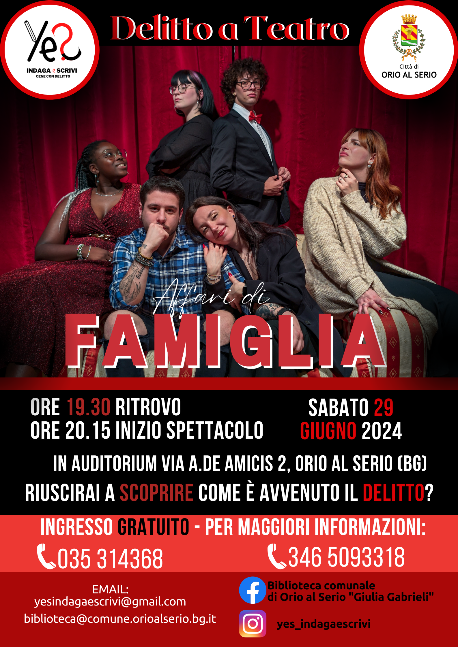 Sabato 29 giugno presso l'Auditorium comunale di Orio al Serio, ci sarà lo spettacolo interattivo "Affari di famiglia".