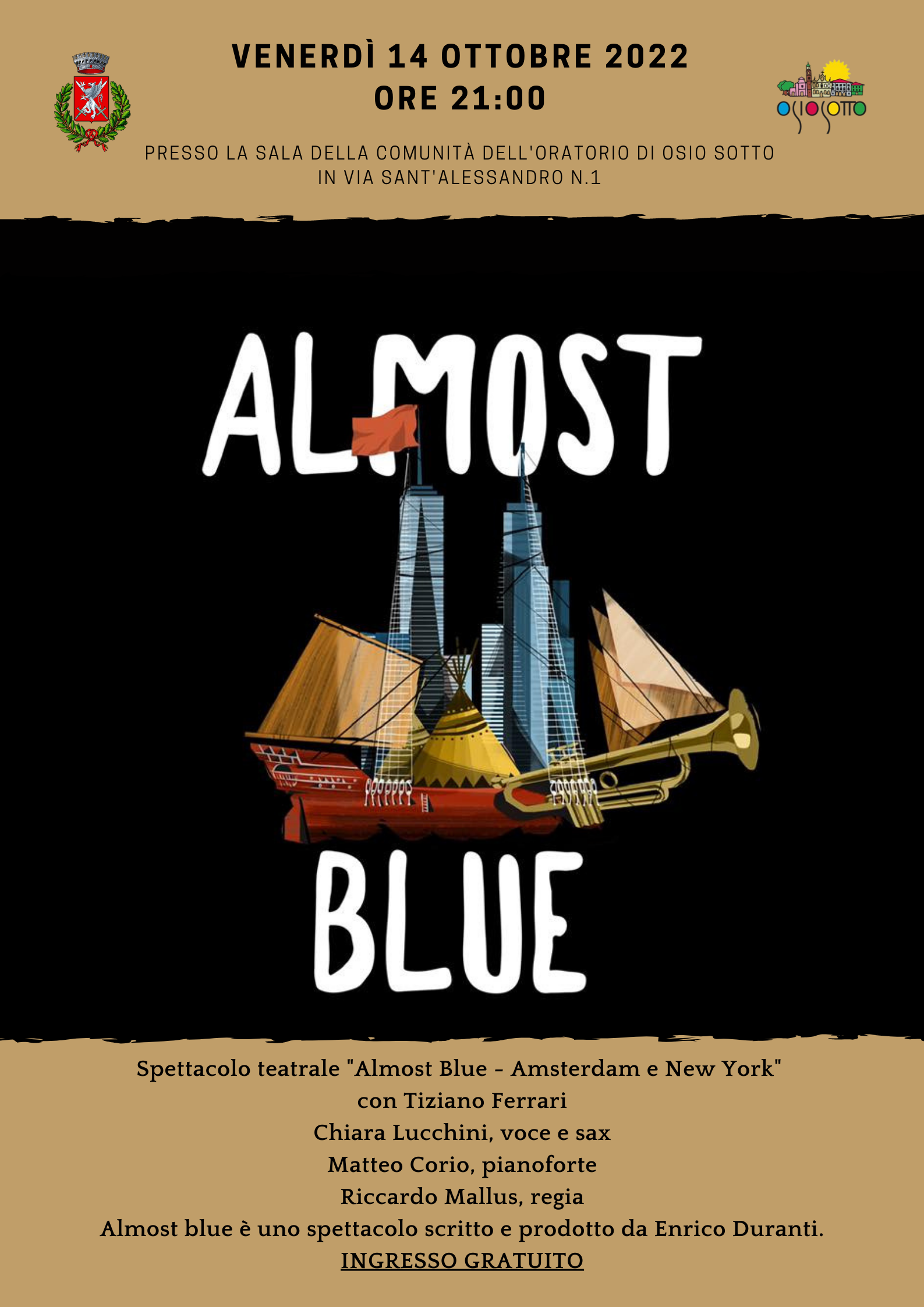 Almost Blue è uno spettacolo nato in seguito a un viaggio nelle città di Amsterdam e New York. Due città che, pur così distanti e così diverse, condividono alcuni momenti cruciali della propria storia e rappresentano un punto di contatto tra Europa e America, tra Vecchio Continente e Nuovo Mondo. Grazie alle storie di cinque personaggi, una piccola costellazione di volti che accompagna lo spettatore in un percorso tracciato dalla musica, il viaggio di Almost Blue prende vita e unisce le due metropoli come tante altre volte è accaduto nella storia.