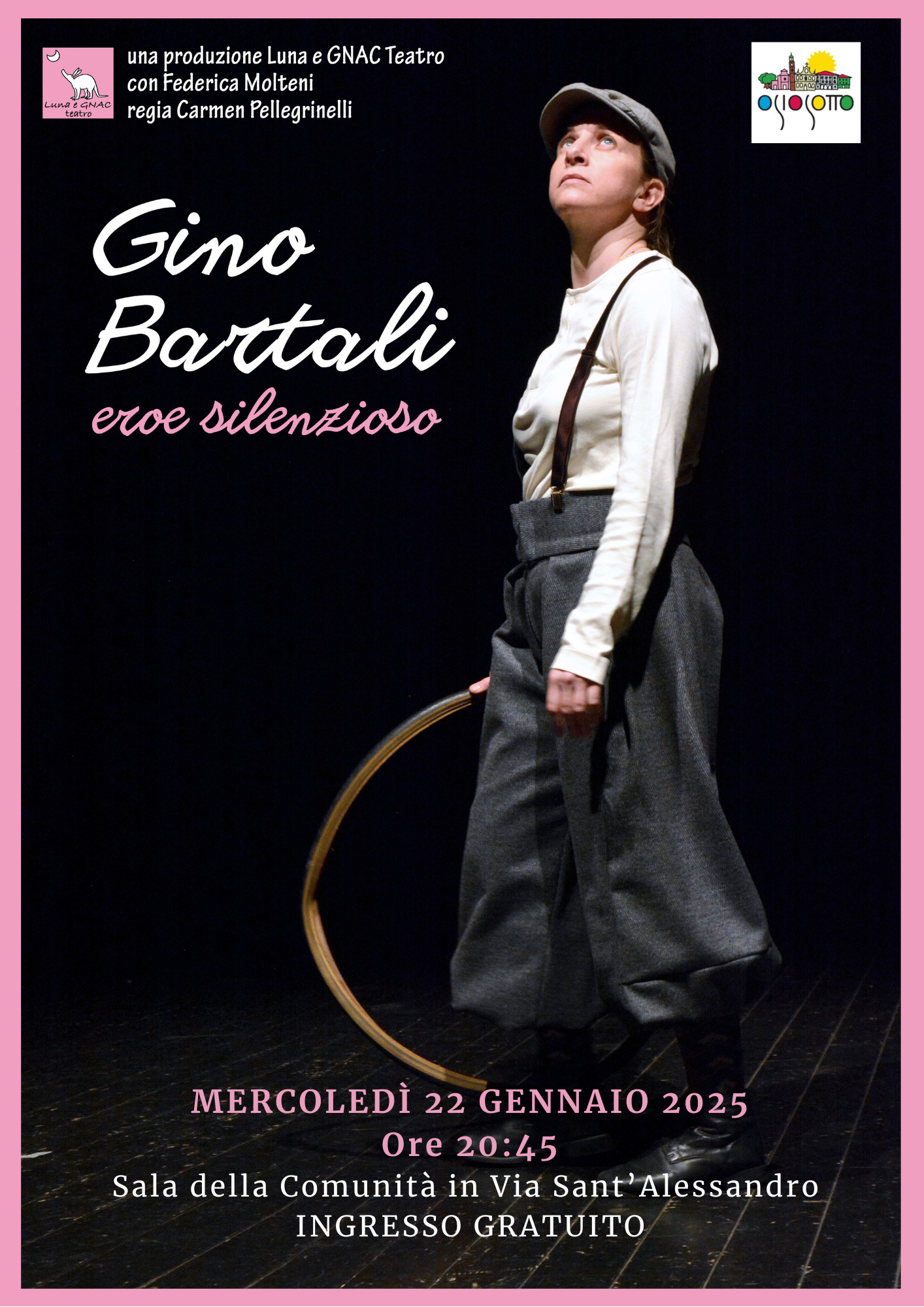 Uno spettacolo dedicato a una storia nascosta del grande ciclista Gino Bartali, tratto dal libro La corsa giusta di Antonio Ferrara. Per parlare dell’Italia al tempo del Fascismo, della fatica dello sport e del silenzio delle azioni più coraggiose.