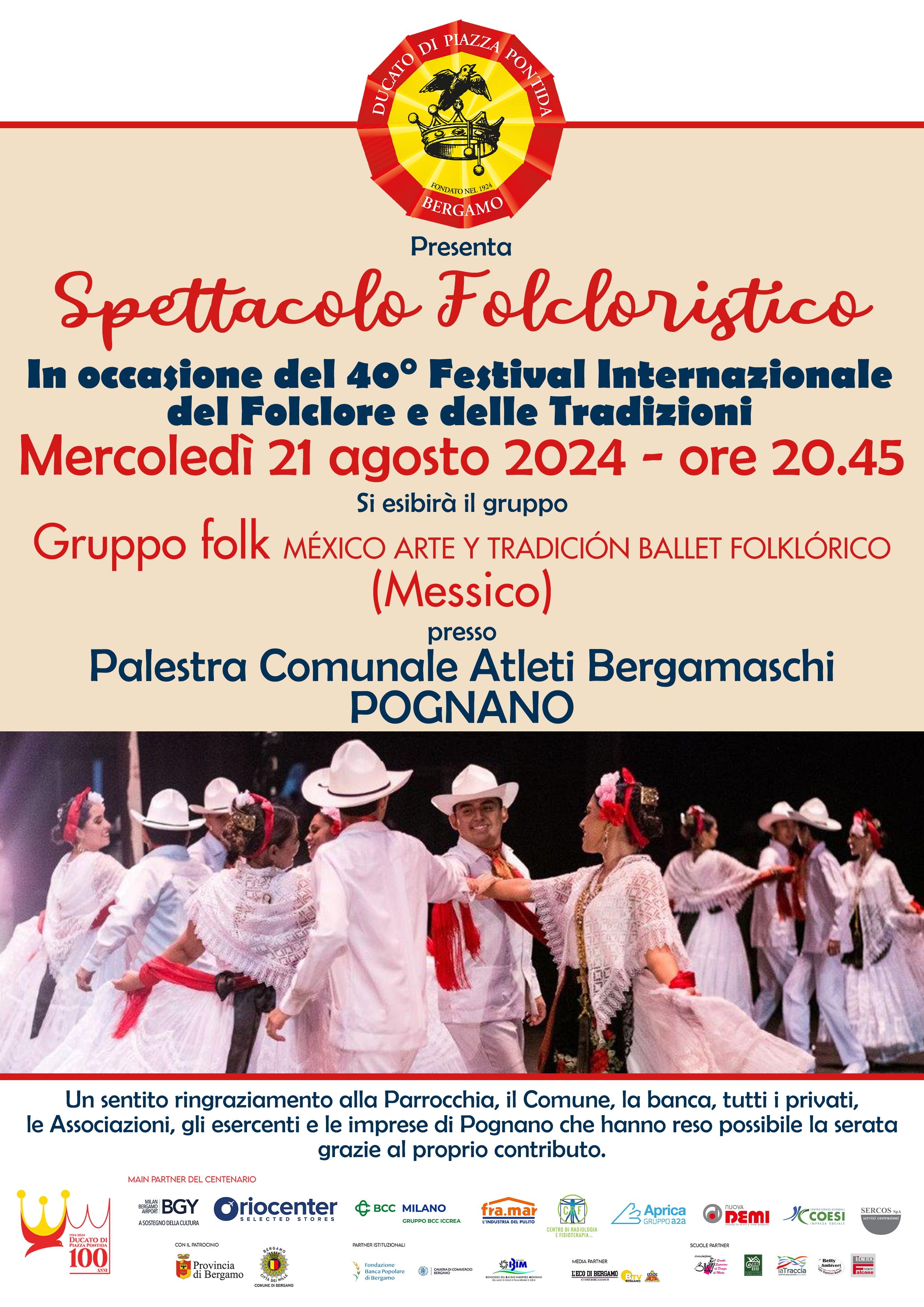 Dal 19 al 26 agosto arriva la 40esima edizione del Festival Internazionale del Folclore e delle Tradizioni. In serata il gruppo Messico si esibirà a Pognano.