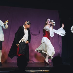 Il ritorno a un teatro popolare, d’origine italiana qual è la commedia dell’arte, è un modo per restituire alla scena ciò che più si avvicina al sentire del pubblico: la storia di chi ha un sogno e non può acchiapparlo se non con caparbietà e determinazione fino a far sì che chi non crede si redima e si unisca al giubilo della felicità estatica finale, sapendo che l’amore vince sempre e comunque, anche nei finali più tragici. Un inno alla gioia ricco d’incidenti e possibilità, com’è la vita, che alla fine ci restituisce la risata con cui seppelliremo tutte le disgrazie. Un ballo liberatorio e rituale che inebria i commensali ospiti di questa cena ricca d’improvvisazione, ritmo, lazzi e scherzi.