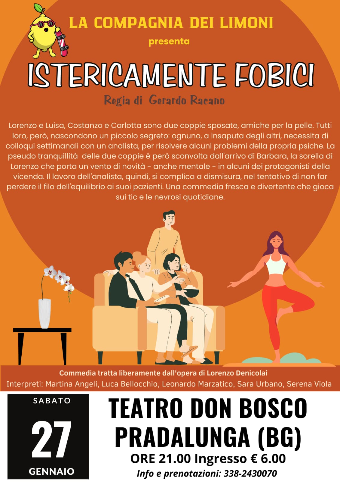 Commedia in due atti brillante e divertente sulle fobie, con protagonisti due coppie in crisi, l'arrivo di una sorella e una psicologa che estremizzerร il tutto.