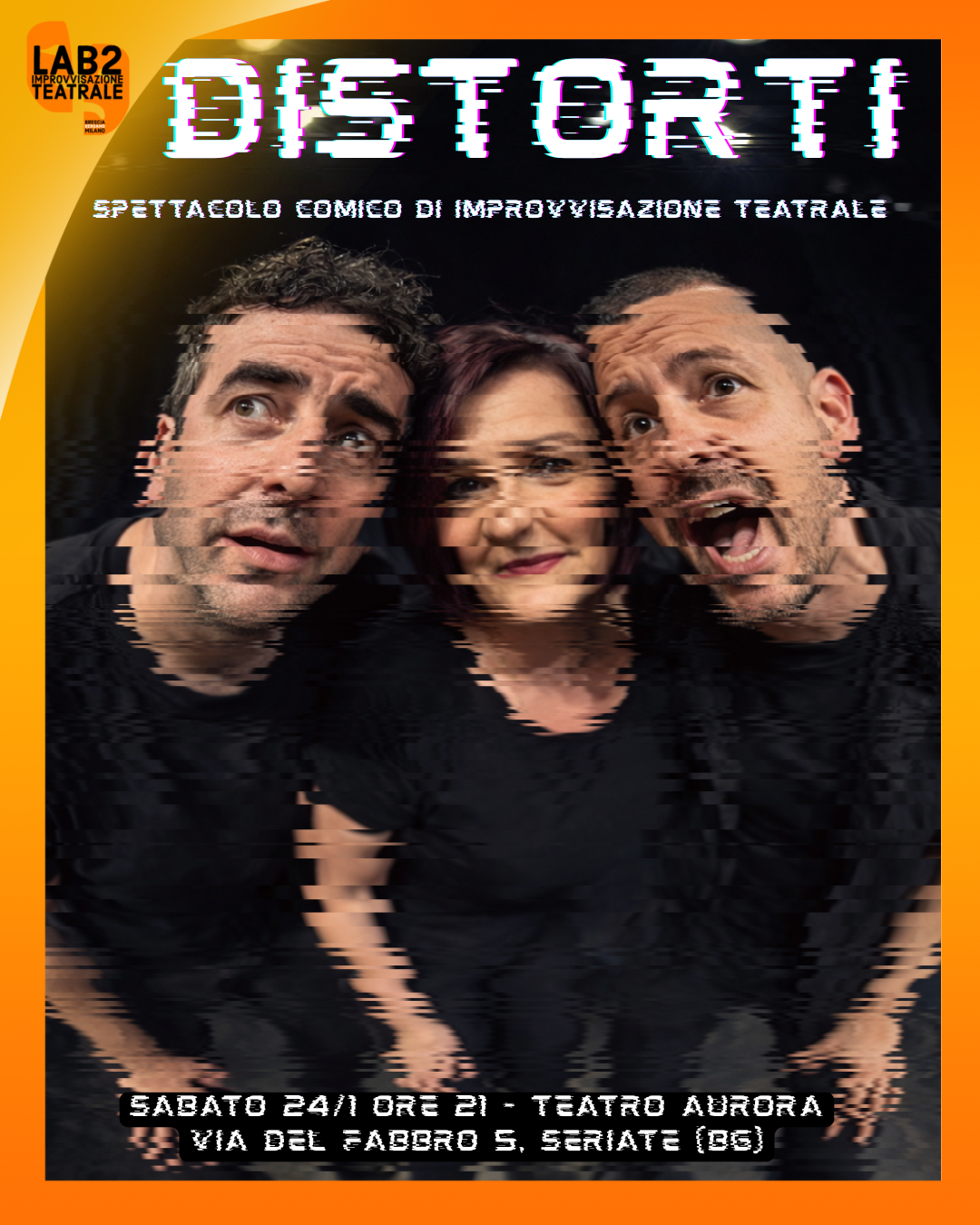 Al Teatro Aurora di Seriate, è in programma uno spettacolo comico di improvvisazione teatrale, a cura di LAB2 Improvvisazione.