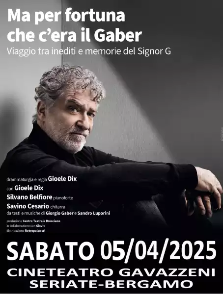 Gioele Dix rende omaggio al talento inimitabile di Giorgio Gaber, considerato da molti il miglior interprete delle aspirazioni di giovani che – citando una sua canzone – “stavano cercando, magari con un po’ di presunzione, di cambiare il mondo”. Lo spettacolo è un originale itinerario nel teatro canzone di Gaber e Luporini, in cui si intrecciano brani conosciuti a inediti: versi mai musicati, canzoni mai eseguite dal vivo, monologhi abbozzati e mai completati.