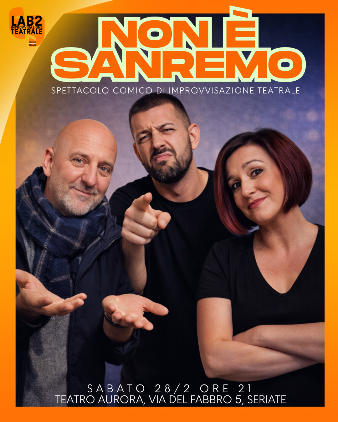 Al Teatro Aurora di Seriate, è in programma uno spettacolo comico di improvvisazione teatrale che non vi farà rimpiangere Sanremo.