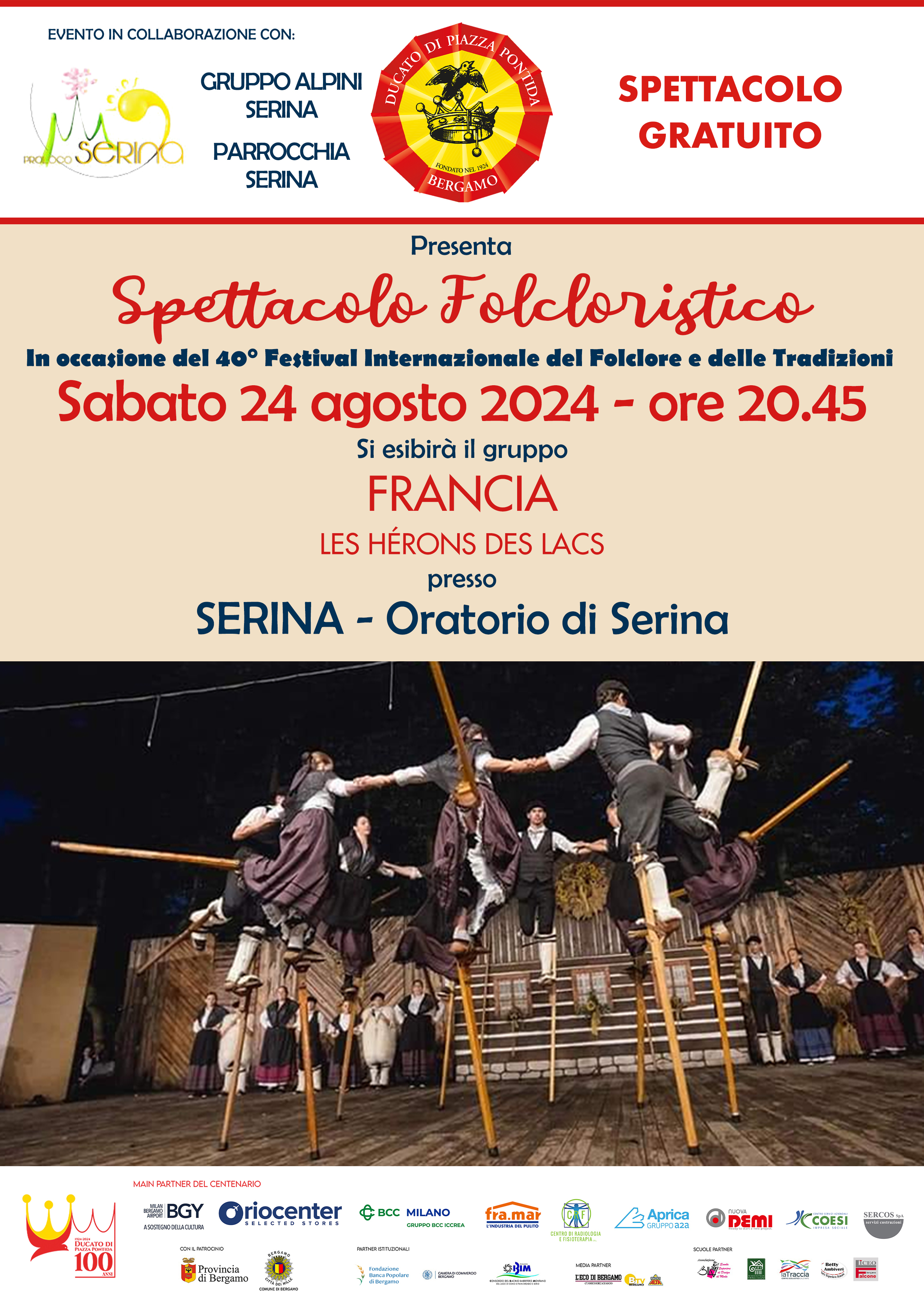 Dal 19 al 26 agosto arriva la 40esima edizione del Festival Internazionale del Folclore e delle Tradizioni. In serata il gruppo Francia si esibirà a Serina.