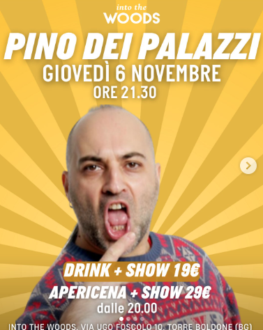 Il comico Pino dei Palazzi, pseudonimo di Giancarlo Calabretta, si esibirà giovedì all'interno del locale. Lo spettacolo sarà introdotto dal comico Omar Fantini.